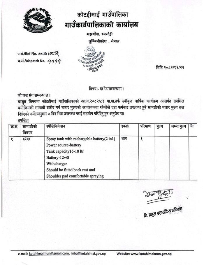 दर रेट सम्बन्धमा ( स्प्रेयर )