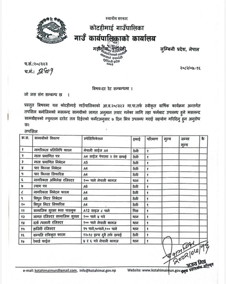 सार्वजनिक खरिद/बोलपत्र सूचना