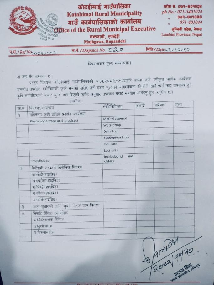 बजार मूल्य सम्वन्धमा ( औषधि )l
