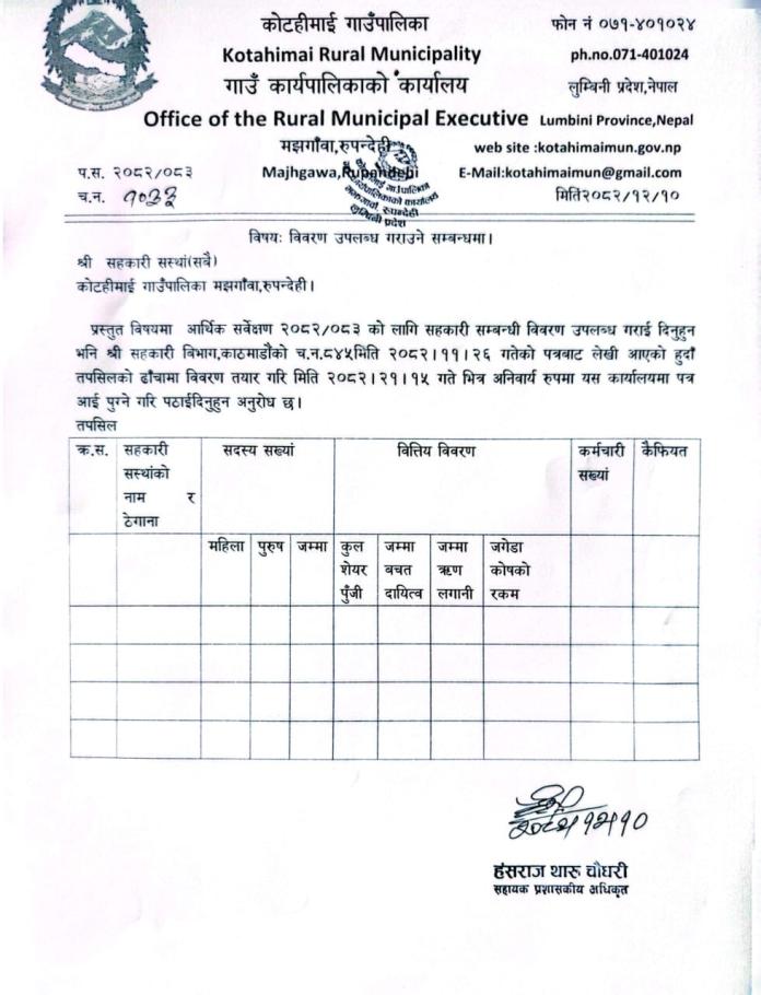 बिबरण उपलब्ध गराउने बारे ( सहकारी ) l