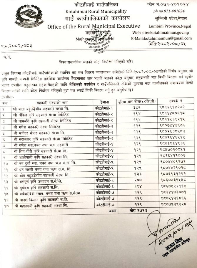 मल कोटा निर्धारण बारे l