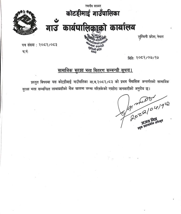 सामाजिक सुरक्षा भत्ता बितरण सम्वन्धमा l