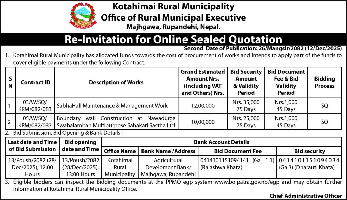सार्वजनिक खरिद/बोलपत्र सूचना
