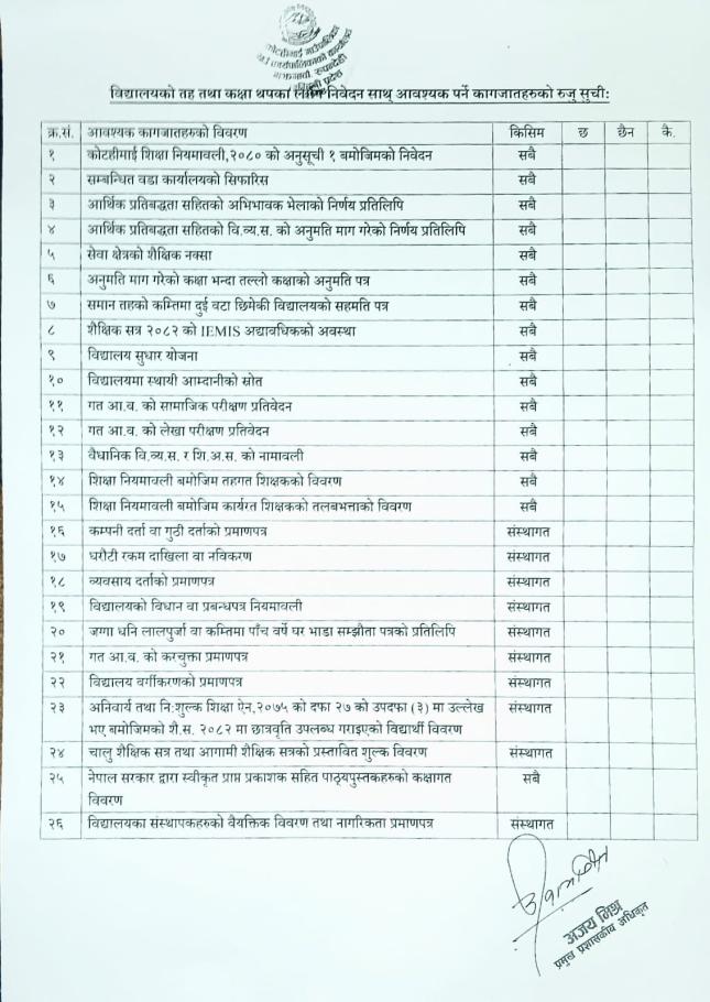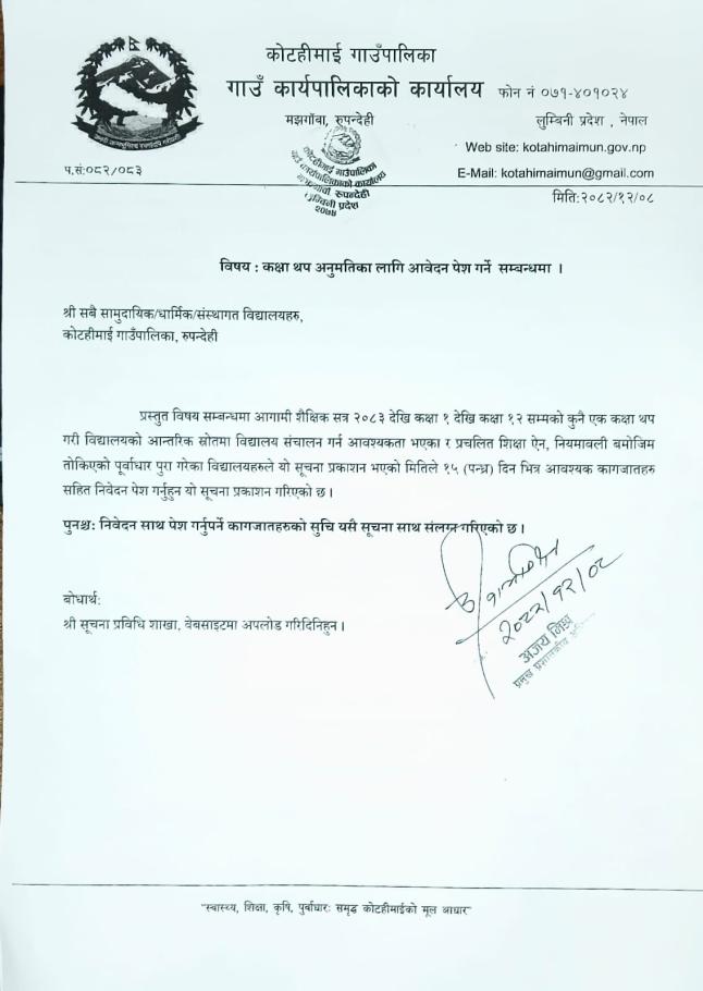 कक्षा थप अनुमति आवेदन बारे l