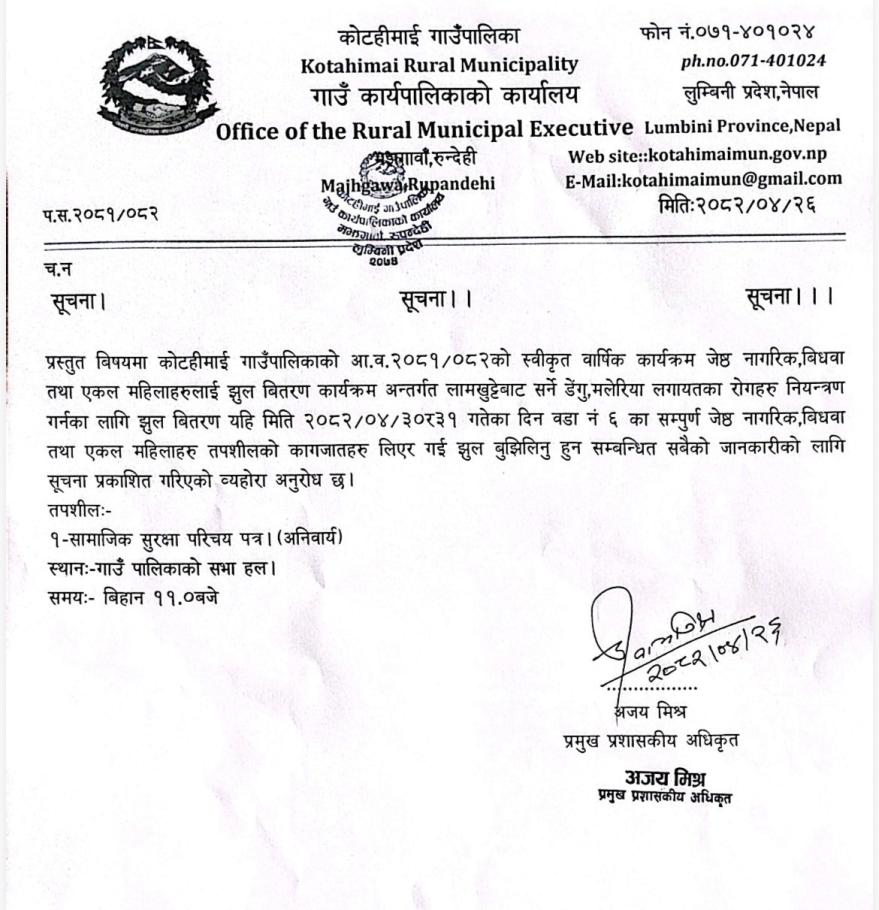 बितरणमुखी कार्यक्रमहरु संचालन नगर्ने/नगराउने सम्बन्धमा l