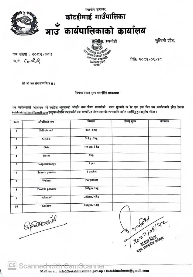 बजार मूल्य सम्वन्धमा ( औषधि )l