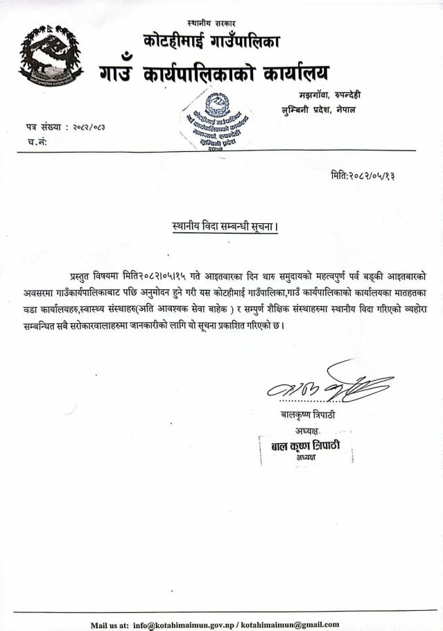 " शिक्षा, कृषि र पूर्वाधार:समृद्ध कोटहीमाईको मूल आधार "